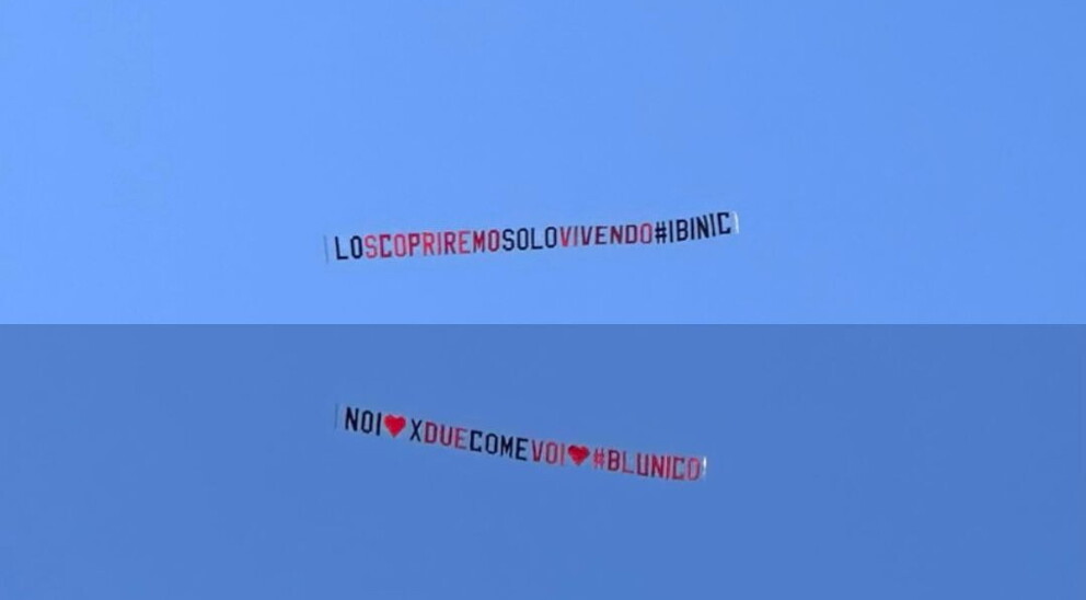 Sul cielo della Casa è apparso lo striscione: