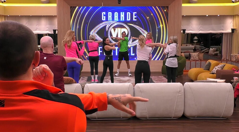 A fine sessione, stanchi ma soddisfatti, i concorrenti portano a termine l'allenamento. Ma per loro non si tratta che dell'inizio: questo è solo il primo appuntamento di una lunga serie dedicata al fitness e al benessere all'interno della Casa.