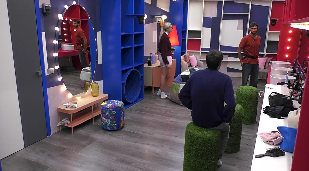 Il concorrente, insieme a Giulia e Domenico, si chiede se fra i due coinquilini ci sia attrazione