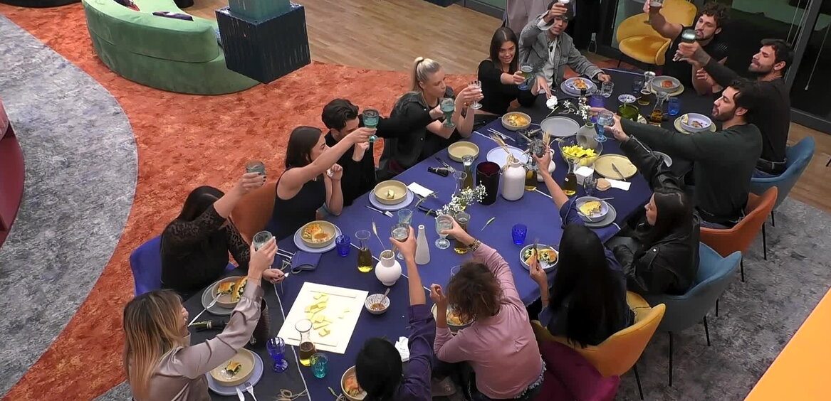 È tutto pronto: riuniti nella sala da pranzo, i Casalinghi sollevano i calici e brindano ad un altro sabato in Casa.
